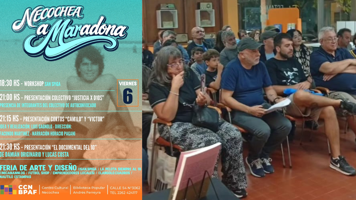 Con una buena convocatoria de público, comenzó en el Centro Cultural Necochea y Biblioteca Popular Andrés Ferreyra el ciclo “Necochea aMaradona”, una propuesta cultural dedicada a la figura de Diego Armando Maradona que combina exposiciones, literatura, cine y actividades artísticas abiertas a la comunidad.