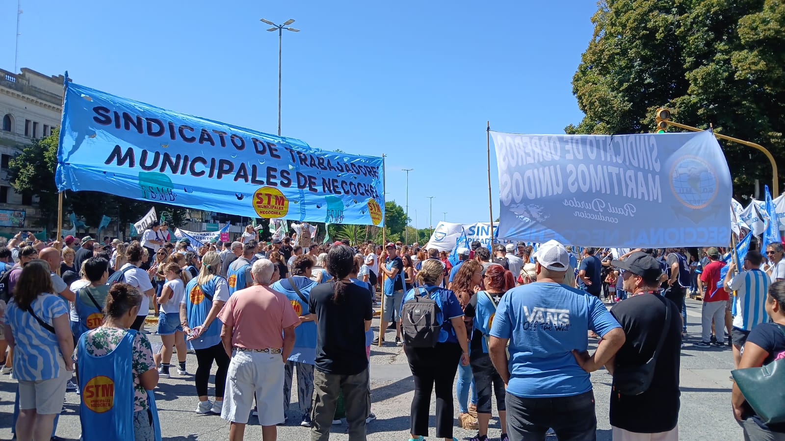 Entre los espacios que formaron parte de la movilización estuvieron sindicatos del ámbito estatal y privado, junto a centrales obreras y agrupaciones territoriales. Participaron, entre otros, la CGT, las dos CTA, gremios municipales, docentes, trabajadores del comercio, la construcción, el transporte, el sector marítimo y portuario, camioneros y representantes de la bancaria.